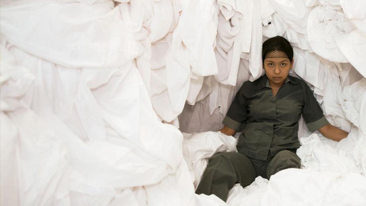 A film about a quietly persevering maid embedded in the class structure of Mexico City calls up inevitable comparisons to ROMA, but Lina Avilés's debut film is closer in spirit to Ken Loach or even Chantal Akerman (JEANNE DIELMAN…) than to Alfonso Cuarón. Subtler, less spectacular, more politically incisive than ROMA, THE CHAMBERMAID centers on Eve, a 24-year-old employee whose domain is the 21st floor of a luxury hotel. Patiently, concisely, absorbingly, the film immerses us in her daily routine, as she caters to the whims of guests, interacts with supportive co-workers, and is strung along by her supervisors. Never leaving the hotel, we learn of her outside life (she has a four-year-old son who is usually asleep by the time she gets home), her aspirations (she is taking a union-sponsored GED class), and her occasional transgressive impulses (she gets turned on by a voyeuristic window-washer). Dangled in front of her are the enticements of a spiffy red dress left unclaimed in the Lost & Found, and a promised promotion to the newly opened, ultra-luxurious 42nd floor. As tension and frustration build, Eve edges closer to a resolution that might bring disaster or liberation. In Spanish with English subtitles. DCP digital widescreen. (MR)