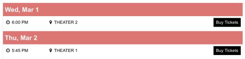 Next, find the showtime you wish to purchase for. Click the “Buy Tickets” button next to the showtime.