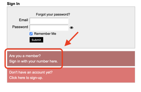 - Click the button stating “Are you a member?” button to access the member log-in.