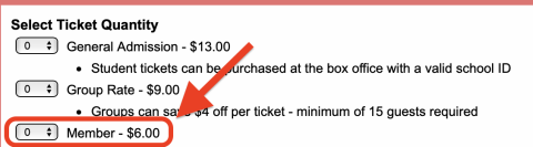 Please note that if you should receive a discounted membership, you will need to visit the box office to verify your discount.